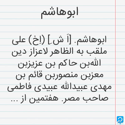 ابوهاشم. [اَ ش ِ] (اِخ) علی ملقب به الظاهر لاعزاز دین اﷲبن حاکم بن عزیزبن معزبن منصوربن قائم بن مهدی عبیداﷲ عبیدی فاطمی صاحب مصر. هفتمین از خلفای فاطمی مصر (411- 427 هَ. ق.). ابن خلکان کنیت او را ابوهاشم آورده و در طبقات سلاطین اسلام لین پول ابوالحسن آمده است. رجوع به ظاهربن حاکم علی... شود.