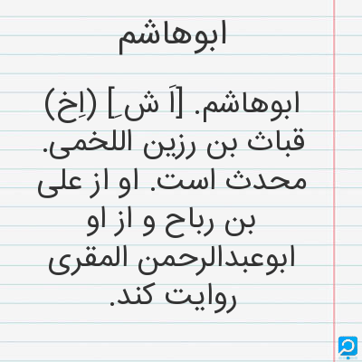 ابوهاشم. [اَ ش ِ] (اِخ) قباث بن رزین اللخمی. محدث است. او از علی بن رباح و از او ابوعبدالرحمن المقری روایت کند.