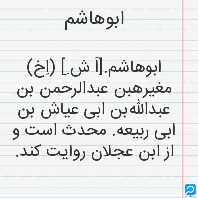 ابوهاشم.[اَ ش ِ] (اِخ) مغیرهبن عبدالرحمن بن عبداﷲبن ابی عیاش بن ابی ربیعه. محدث است و از ابن عجلان روایت کند.