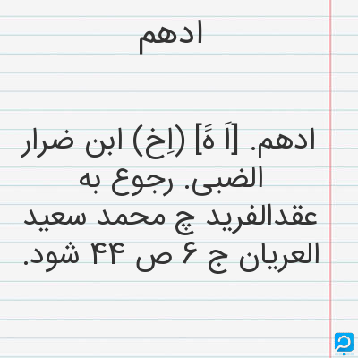 ادهم. [اَ هََ] (اِخ) ابن ضرار الضبی. رجوع به عقدالفرید چ محمد سعید العریان ج 6 ص 44 شود.