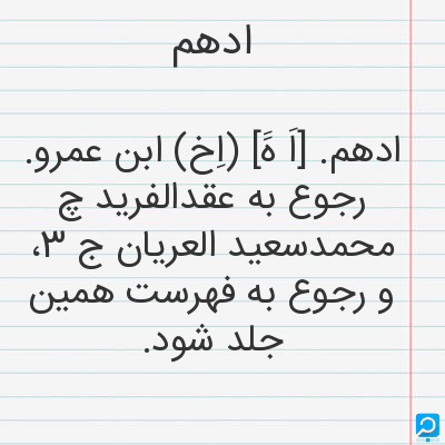 ادهم. [اَ هََ] (اِخ) ابن عمرو. رجوع به عقدالفرید چ محمدسعید العریان ج 3، و رجوع به فهرست همین جلد شود.