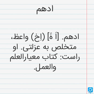 ادهم. [اَ هََ] (اِخ) واعظ، متخلص به عزلتی. او راست: کتاب معیارالعلم والعمل.