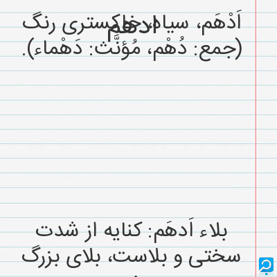 اَدْهَم، سیاه، خاکستری رنگ (جمع: دُهْم، مُؤنَّث: دَهْماء).