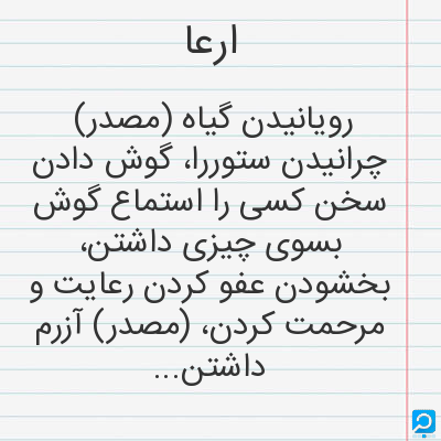 ارعا در فرهنگ لغات ها (دهخدا،معین و ... ) + سایر منابع اطلاعاتی