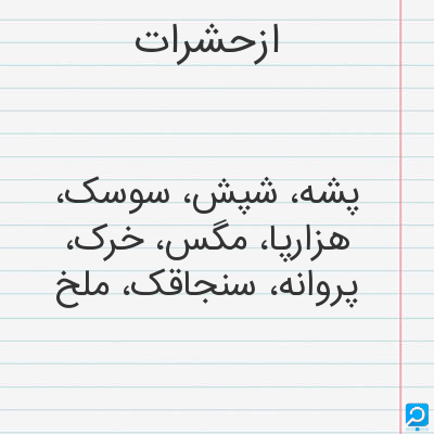 پشه، شپش، سوسک، هزارپا، مگس، خرک، پروانه، سنجاقک، ملخ