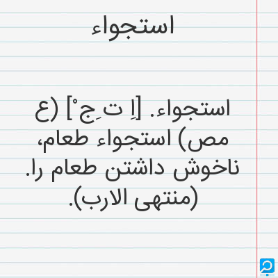 استجواء. [اِ ت ِج ْ] (ع مص) استجواء طعام، ناخوش داشتن طعام را. (منتهی الارب).