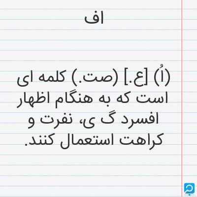 (اُ) [ع.] (صت.) کلمه ای است که به هنگام اظهار افسرد گ ی، نفرت و کراهت استعمال کنند.
