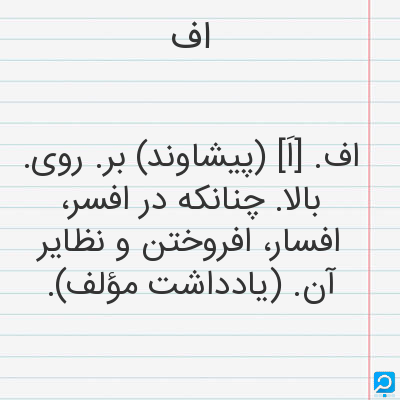 اف. [اَ] (پیشاوند) بر. روی. بالا. چنانکه در افسر، افسار، افروختن و نظایر آن. (یادداشت مؤلف).