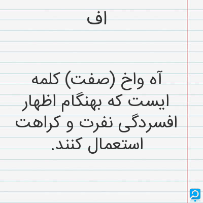 آه واخ (صفت) کلمه ایست که بهنگام اظهار افسردگی نفرت و کراهت استعمال کنند.