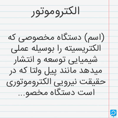 الکتروموتور در فرهنگ لغات ها (دهخدا،معین و ... ) + سایر منابع اطلاعاتی
