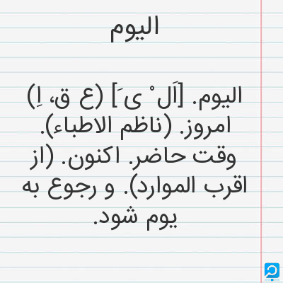 الیوم در فرهنگ لغات ها (دهخدا،معین و ... ) + سایر منابع اطلاعاتی