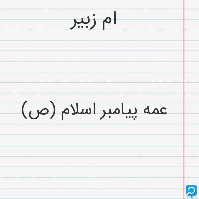 ام زبیر. [اُم ْ م ِ زُ ب َ] (اِخ) یکی از عمه های پیغمبر اسلام بود. (از تاریخ گزیده چ لندن ص 163).