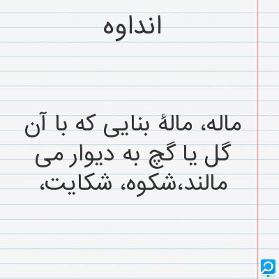 انداوه. [اَ وَ / وِ] (اِ) ماله ٔ استادان بنا باشد و آن افزاری است که بدان گل و گچ بر بام و دیوار مالند. (برهان قاطع) (آنندراج). ماله ٔ بنایان که بدان اندود کنند و بام اندایند. اندا و انداوه بدل یکدیگرند. (انجمن آرا). ماله که بدان اندود کنند. (فرهنگ سروری). مسجه. مسیعه. ماله که آلت اندایش است. (شرفنامه ٔ منیری). || شکوه و شکایت. شکوه. || غیبت. (برهان قاطع) (انجمن آرا) (آنندراج). و رجوع به اندابه و اندایه و ماله شود.