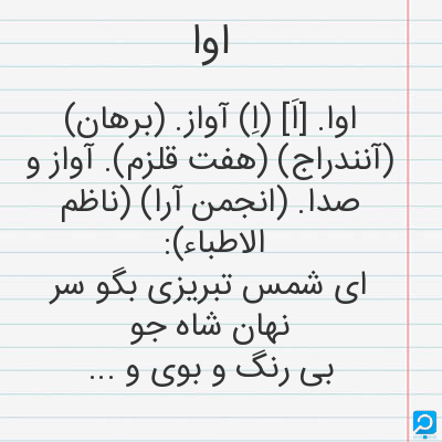 اوا در فرهنگ لغات ها (دهخدا،معین و ... ) + سایر منابع اطلاعاتی
