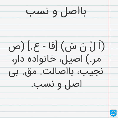 (اَ لُ نَ سَ) [فا - ع.] (ص مر.) اصیل، خانواده دار، نجیب، بااصالت. مق. بی اصل و نسب.