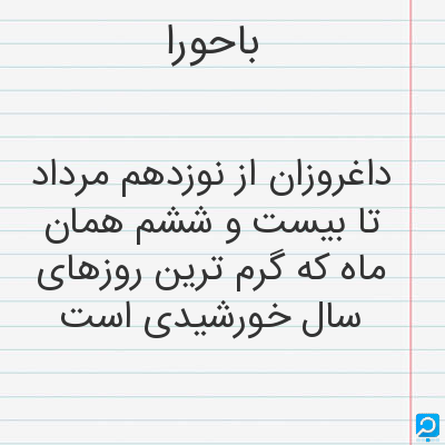 باحورا. (اِ) لفظی است یونانی بمعنی روزگارآزموده و ایام آن هفت روز است و بعضی گویند هشت روز ابتدای آن از نوزدهم تموز باشد و در آن ایام آغاز شکستن گرما بود، و بعضی گویند معنی این لفظ شدت و زیادتی گرما باشد و بعضی گویند این لفظ مأخوذ است از بحران بمعنی حکم یعنی از این روزها حکم کنند بر احوال ماههای خزان و زمستان و روز اول آن دلیل تشرین اول و روز دوم آن دلیل تشرین آخر تا بآخر هرچه در آن روزها واقعشود از گرما و سرما و باران و میغ در آن ماهها نیز چنان بود، و جمعی گویند روز اول آن دلیل ماهی است که آفتاب در برج اسد باشد و روز دوم در سنبله و همچنین تا بحوت که هشتم است بحکم مذکور از باد و باران و امثال آن. (برهان). و رجوع به باحور شود: