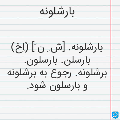 بارشلونه. [ش ِ ن َ] (اِخ) بارسلن. بارسلون. برشلونه. رجوع به برشلونه و بارسلون شود.