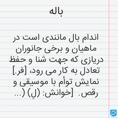 باله در فرهنگ لغات ها (دهخدا،معین و ... ) + سایر منابع اطلاعاتی