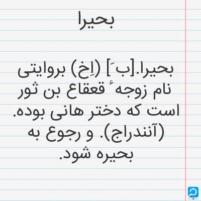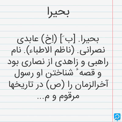 بحیرا در فرهنگ لغات ها (دهخدا،معین و ... ) + سایر منابع اطلاعاتی