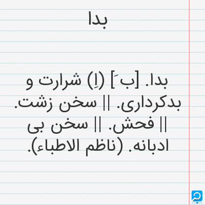 بدا. [ب َ] (اِ) شرارت و بدکرداری. || سخن زشت. || فحش. || سخن بی ادبانه. (ناظم الاطباء).
