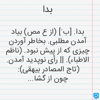 بدا در فرهنگ لغات ها (دهخدا،معین و ... ) + سایر منابع اطلاعاتی