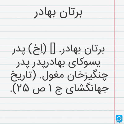 برتان بهادر. [] (اِخ) پدر یسوکای بهادرپدر پدر چنگیزخان مغول. (تاریخ جهانگشای ج 1 ص 25).