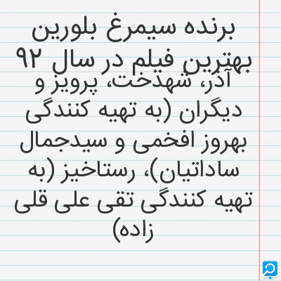 برنده سیمرغ بلورین بهترین فیلم در سال 92 در حل جدول