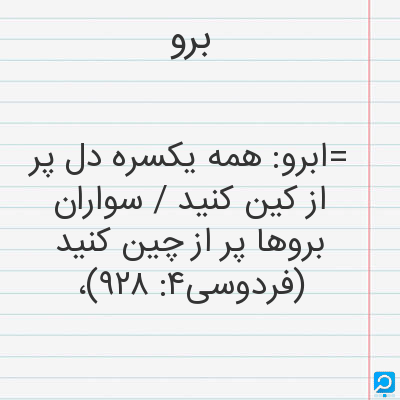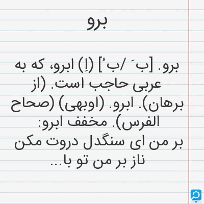 برو. [ب َ /ب ُ] (اِ) ابرو، که به عربی حاجب است. (از برهان). ابرو. (اوبهی) (صحاح الفرس). مخفف ابرو:
