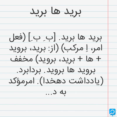 برید ها برید. [ب ِ ب ِ] (فعل امر، اِ مرکب) (از: برید، بروید + ها + برید، بروید) مخفف بروید ها بروید. بردابرد. (یادداشت دهخدا). امرمؤکد به دور شدن. امر بر از سر راه کسی برخاستن.