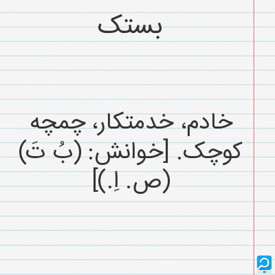 خادم، خدمتکار، چمچه کوچک. [خوانش: (بُ تَ) (ص. اِ.)]