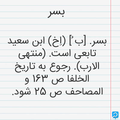 بسر. [ب ُ] (اِخ) ابن سعید تابعی است. (منتهی الارب). رجوع به تاریخ الخلفا ص 163 و المصاحف ص 25 شود.