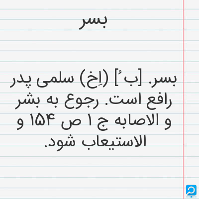 بسر. [ب ُ] (اِخ) سلمی پدر رافع است. رجوع به بشر و الاصابه ج 1 ص 154 و الاستیعاب شود.