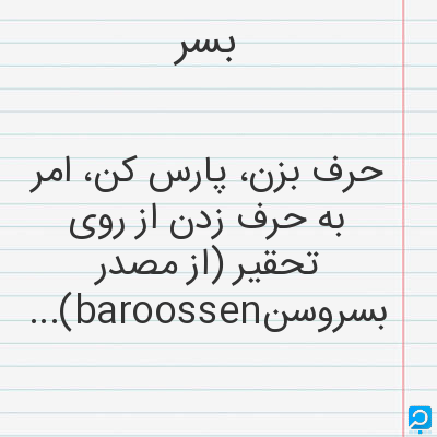 حرف بزن، پارس کن، امر به حرف زدن از روی تحقیر (از مصدر بسروسنbaroossen)...
