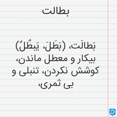 بَطالَت، (بَطَلَ، یَبطٌلٌ) بیکار و معطل ماندن، کوشش نکردن، تنبلی و بی ثمری،