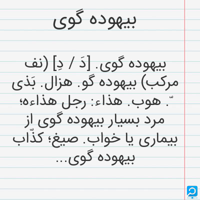 بیهوده گوی در فرهنگ لغات ها (دهخدا،معین و ... ) + سایر منابع اطلاعاتی
