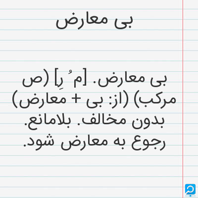 بی معارض. [م ُ رِ] (ص مرکب) (از: بی + معارض) بدون مخالف. بلامانع. رجوع به معارض شود.