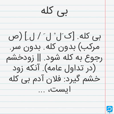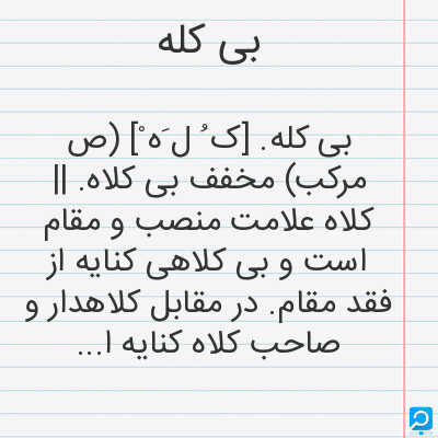 بی کله در فرهنگ لغات ها (دهخدا،معین و ... ) + سایر منابع اطلاعاتی