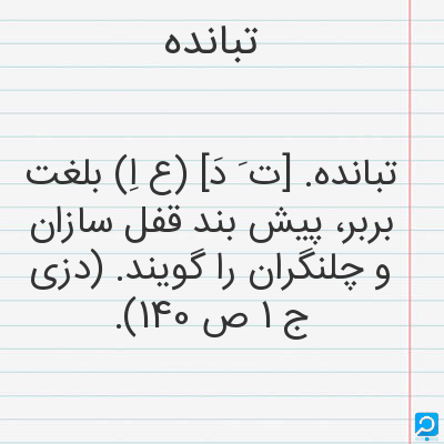 تبانده. [ت َ دَ] (ع اِ) بلغت بربر، پیش بند قفل سازان و چلنگران را گویند. (دزی ج 1 ص 140).