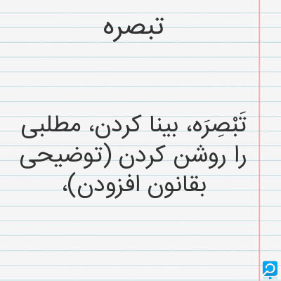 تَبْصِرَه، بینا کردن، مطلبی را روشن کردن (توضیحی بقانون افزودن)،