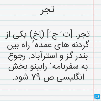 تجر. [ت َ ج َ] (اِخ) یکی از گردنه های عمده ٔ راه بین بندر گز و استرآباد. رجوع به سفرنامه ٔ رابینو بخش انگلیسی ص 79 شود.