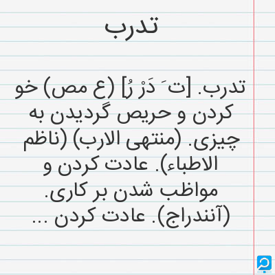 تدرب در فرهنگ لغات ها (دهخدا،معین و ... ) + سایر منابع اطلاعاتی