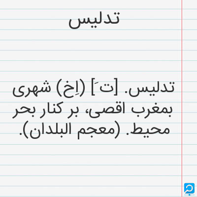 تدلیس. [ت َ] (اِخ) شهری بمغرب اقصی، بر کنار بحر محیط. (معجم البلدان).