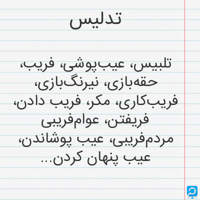 تلبیس، عیبپوشی، فریب، حقهبازی، نیرنگبازی، فریبکاری، مکر، فریب دادن، فریفتن، عوامفریبی مردمفریبی، عیب پوشاندن، عیب پنهان کردن