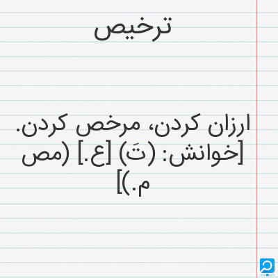 ارزان کردن، مرخص کردن. [خوانش: (تَ) [ع.] (مص م.)]