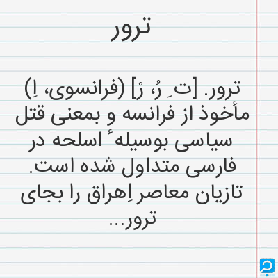 ترور در فرهنگ لغات ها (دهخدا،معین و ... ) + سایر منابع اطلاعاتی
