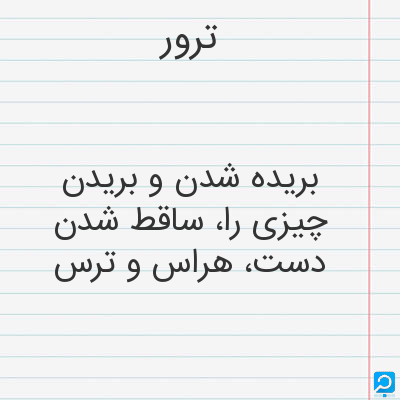 هراس، هراس افکندن، ایجاد وحشت کردن، کشتن ناگهانی یک فرد بدون آن که فرد مورد نظر فرصتی برای دفاع یا مقابله داشته باشد، شخصیت با دروغ و جوسازی شخصیت اجتماعی کسی را زیر سوال بردن و وجهه اجتماعی او را مخدوش کردن. [خوانش: (تِ رُ) [فر.] (اِ.)]