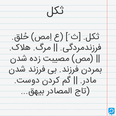 ثکل در فرهنگ لغات ها (دهخدا،معین و ... ) + سایر منابع اطلاعاتی