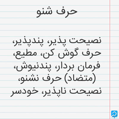 نصیحتپذیر، پندپذیر، حرفگوشکن، مطیع، فرمانبردار، پندنیوش،