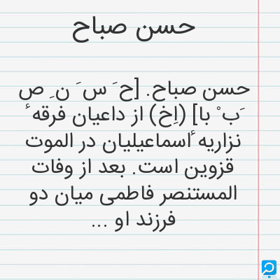 حسن صباح در فرهنگ لغات ها (دهخدا،معین و ... ) + سایر منابع اطلاعاتی