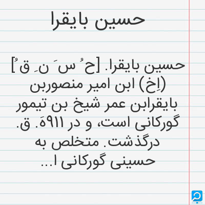 حسین بایقرا در فرهنگ لغات ها (دهخدا،معین و ... ) + سایر منابع اطلاعاتی